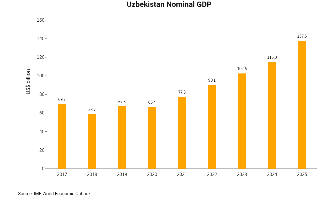 Since the initiation of economic reforms, Uzbekistan has witnessed steady progress, with economic growth beginning to accelerate. Between 2017 and 2025, the nation’s nominal GDP doubled in US dollar terms. Efforts in market liberalisation, as well as measures to facilitate trade and investment, have effectively driven substantial economic expansion. However, further structural reforms are necessary to ensure that this growth remains sustainable and inclusive for all citizens.